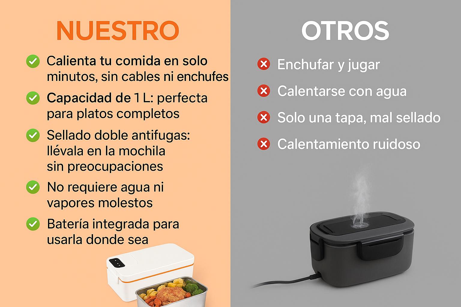 ¿Cansado de comer frío cuando estás fuera de casa? esta lonchera eléctrica recargable calienta tu comida en cualquier lugar . Ideal para el trabajo, la universidad, viajes o excursiones — ¡tu almuerzo siempre caliente, como recién hecho!